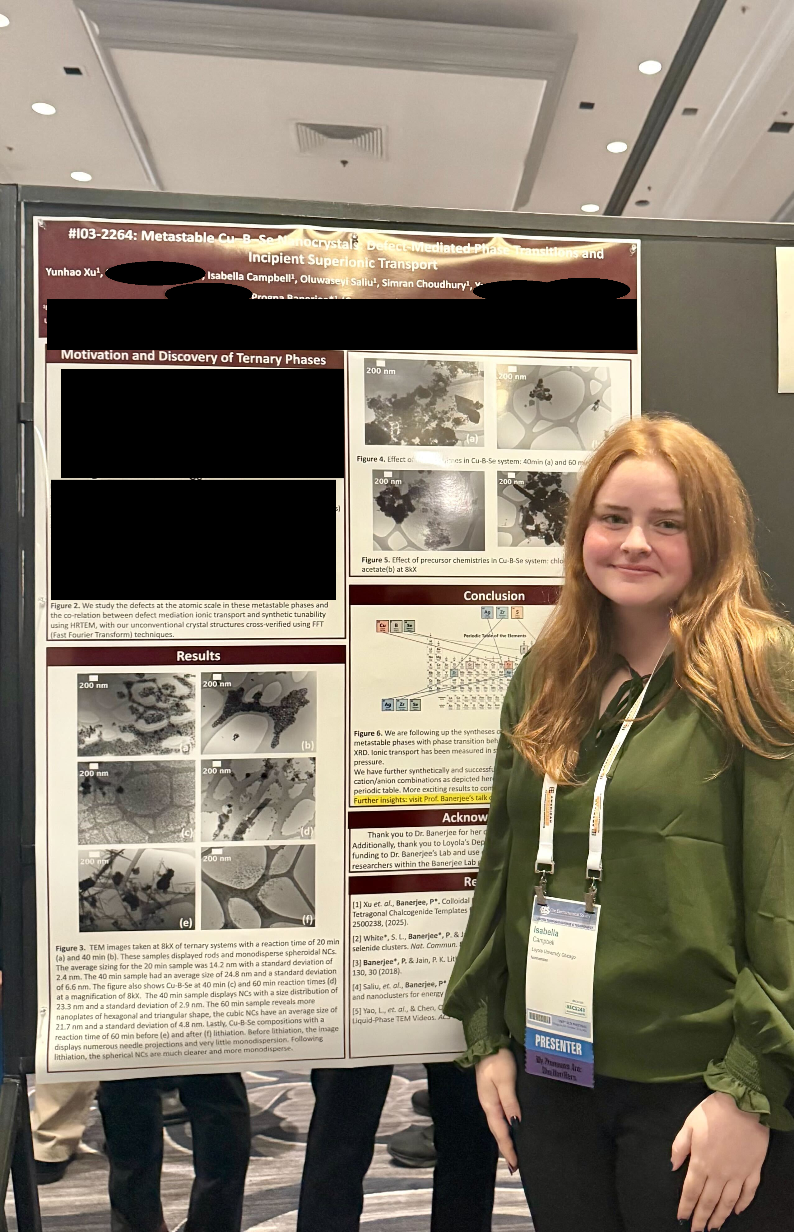 Progna Banerjee, Ph.D. is a tenure-track Assistant Professor of Chemistry & Biochemistry at Loyola University Chicago (since 2024), where she leads the PBEnergyLab. Recognized as a 2026 Materials Au Rising Star, her research pioneers closed-loop robotics integrated with advanced electron microscopy and electrochemistry. Her group develops autonomous pipelines for the synthesis of metastable phases in nanostructured materials, specifically designed to engineer next-generation solid electrolytes and superionic conductors for high-performance batteries, fuel cells, and catalytic systems.