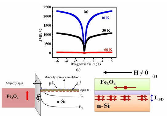 | 1. Electrical spin extraction and giant positive junction magnetoresistance in a Fe3O4/MgO/n-Si magnetic diode like heterostructure Panda, J., Banerjee, P., Nath, TK. Journal of Physics D: Applied Physics, 47, 41, 415103, 2014. | ![]() |