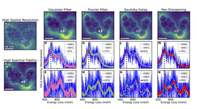 | 10. Enhancing hyperspectral EELS analysis of complex plasmonic nanostructures with pan-sharpening Borodinov, N., Banerjee, P., Cho, S.H., Milliron, D.J., Ovchinnikova, O.S., Vasudevan, R.K., Hachtel, J.A. The Journal of Chemical Physics, 154, 1, 2021. JCP Editors’ Choice 2021 , Spectroscopy and Microscopy of Plasmonic Systems | ![]() |