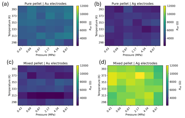 | 25. Pressure-Resolved Impedance Reveals Contact-Limited Nanoionics in Nanocrystal-Derived Solid Electrolytes, Xu, Y., Campbell, I., Cooper, O., Choudhary, S., Saliu, O., Banerjee, P.* (Corresponding author), in review, 2026. Preprint DOI: 10.26434/chemrxiv-2026-t7qrx One-line summary: A pressure–temperature impedance framework disentangles intrinsic nanoionic transport from contact-limited conduction in nanocrystal-derived solid electrolytes. | ![]() Reproduced from our preprint “Pressure-Resolved Impedance Reveals …” (DOI:10.26434/chemrxiv-2026-t7qrx). License: CC BY NC ND 4.0 (authors retain copyright). No publisher formatting. |