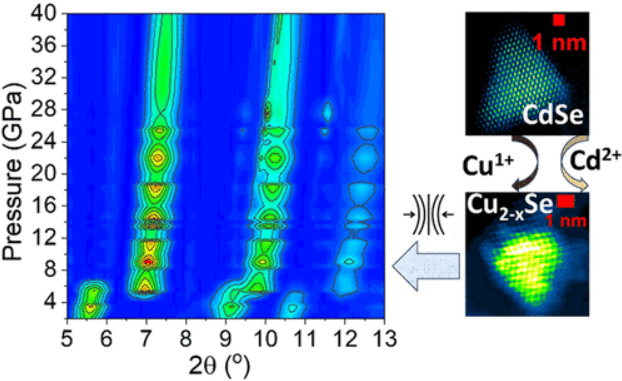 ![]() ![]() MECHANISTIC INSIGHTS INTO CATION EXCHANGE AND COMPRESSIBILITY OF MESTABLE PHASES WITH CHEMICALLY TUNED SUPERIONIC PROPERTIES (Argonne) | By utilizing a surfactant-encoded cation exchange pathway in 2D atomically thin CdSe nanoplatelets, my lead projects while at Argonne achieved near-complete monovalent copper substitution at room temperature, revealing that oxygen facilitates redox-mediated transformation while precursor valency dictates the preservation of metastable 2D morphologies Furthermore, high-pressure synchrotron studies on these chemically tuned copper selenides using APS beamlines identified a novel, previously unreported CsCl-type B2 phase emerging above 4 GPa, demonstrating that interfacial defects and sintering stabilize unique high-pressure crystalline structures regardless of the initial host symmetry. Chemistry of Materials, 35, 21, 8872-8882, 2023 Nano Letters, 24, 23, 6981–6989, 2024 |